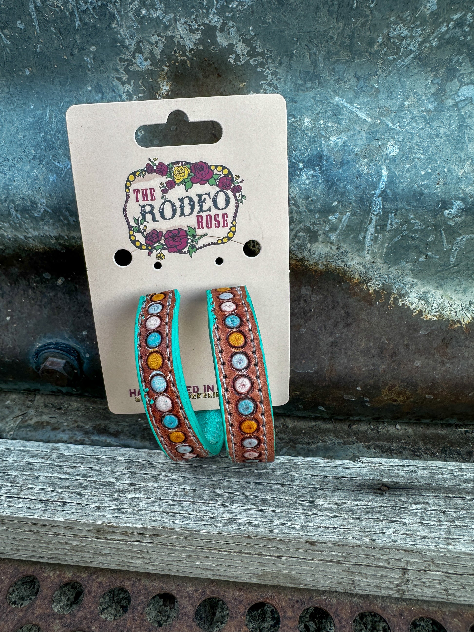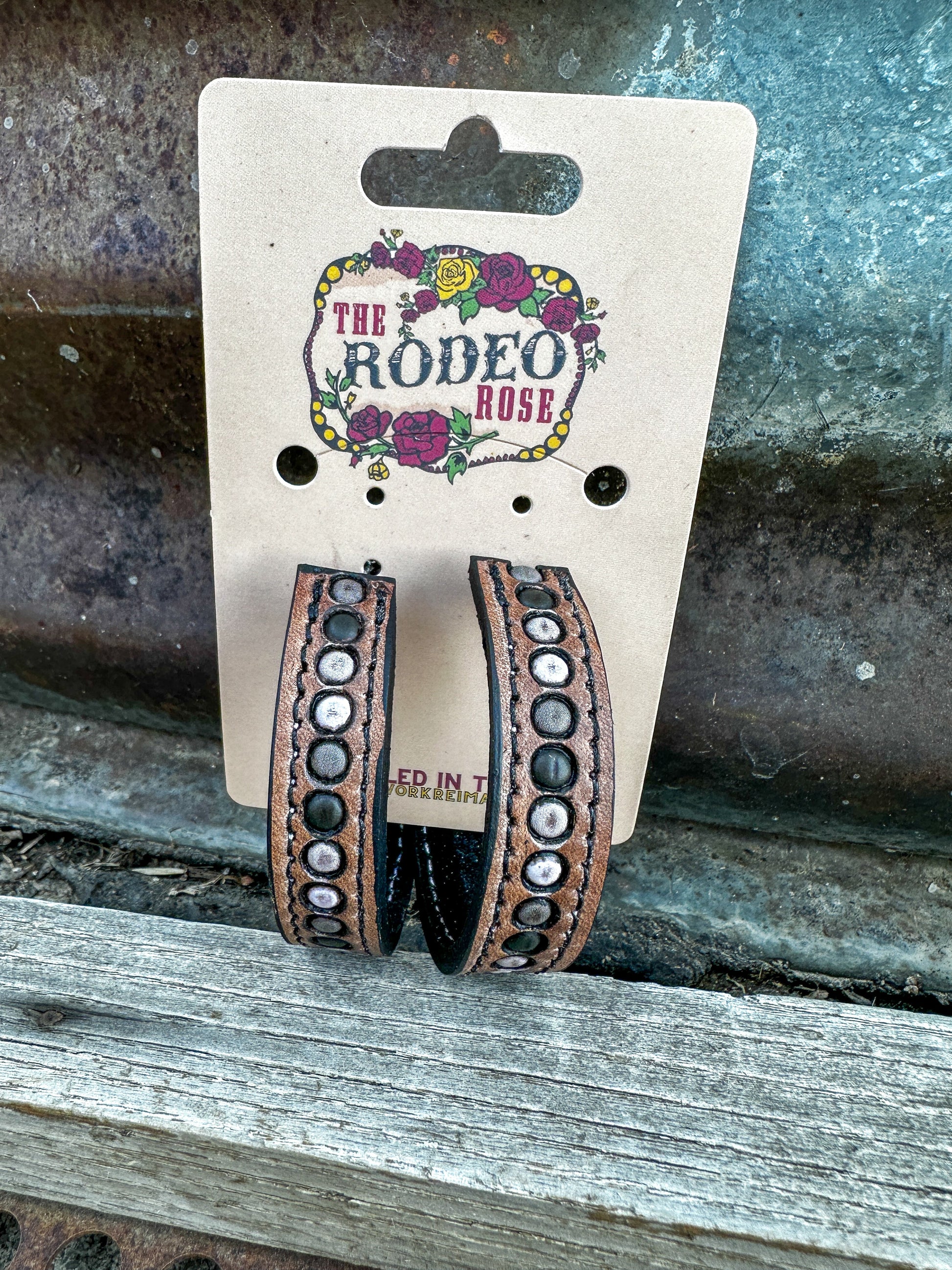 These hoops can be worn every day or at a rodeo. Bringing the same life as Vera to your outfit. Tooled leather dot pattern.
