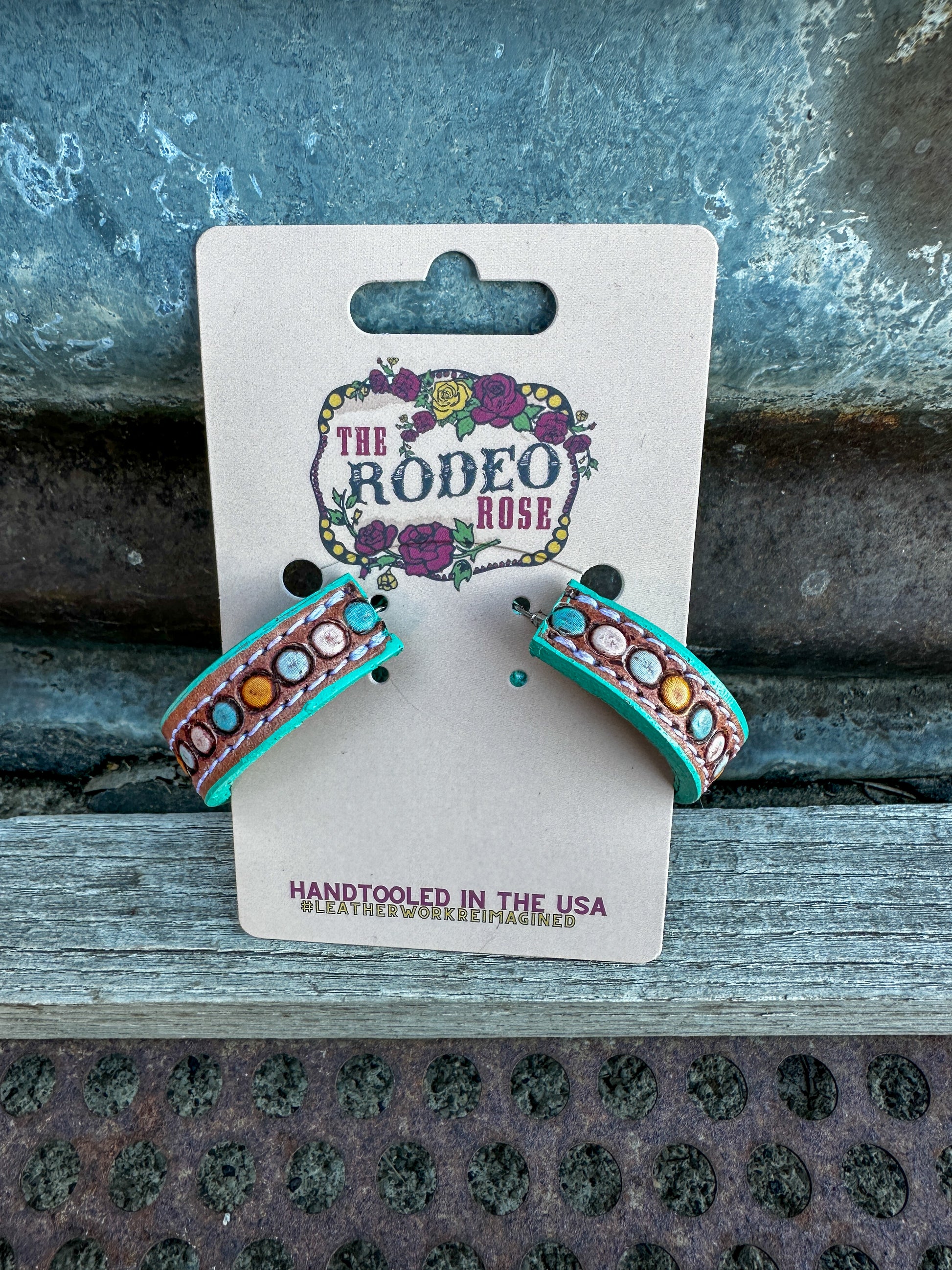These hoops can be worn every day or at a rodeo. Bringing the same life as Vera to your outfit. Tooled leather dot pattern.