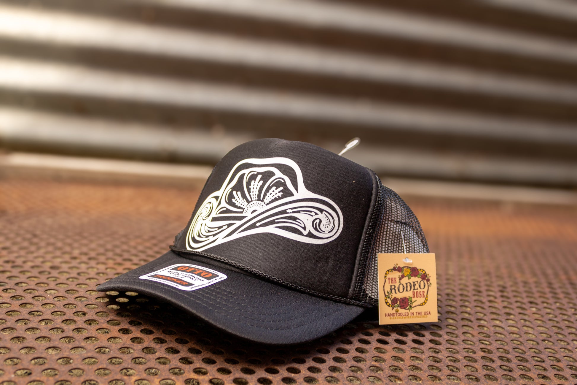 Discover the bold spirit of the West with this Tooled Cowboy Hat Cap, featuring a unique floral design crafted by Amanda Rose at The Rodeo Rose. Printed right at the base of the Black Hills and proudly made in South Dakota, USA, this cap blends authentic craftsmanship with daring style for those who live to stand out.